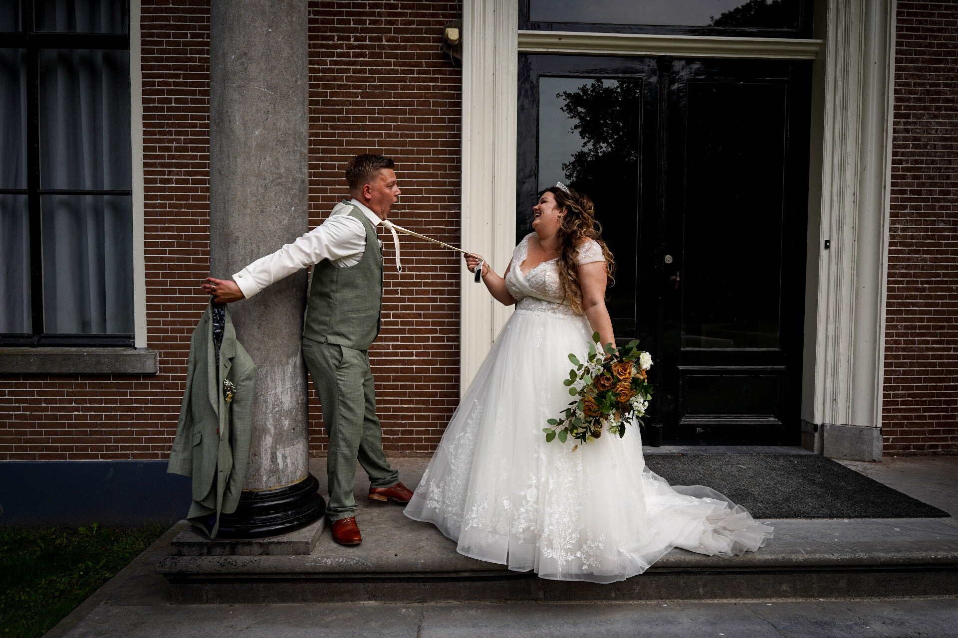 Samen met mijn collega fotograaf Whitneyfotografie leggen wij jullie dag echt compleet vast. Terwijl de bruidegom gefocust zijn stropdas voor de spiegel optrekt, zit de bruid met gezonde zenuwen in de make up. Beide momenten worden vastgelegd, want ik ben bij de bruidegom, en Whitney bij de bruid. Deze samenwerking biedt talloos veel opties om de dag completer maar ook creatiever vast te leggen. Terwijl Whitney de kus tijdens de ceremonie vastlegt, fotografeer ik de emotioneel weggetrokken gezichten van de familie en vrienden op de voorste rij.